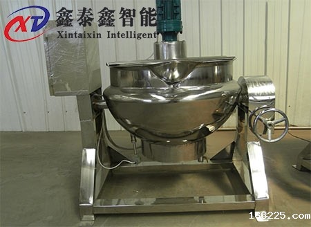 卤煮夹层锅中间层整个锅是由内、外球形锅组成的双层结构,热源中引入中间层,有固定、倾斜、搅拌等形式,固定型主要由锅体和支撑脚组成;倾斜型主要由锅体和倾斜架构成;搅拌型主要由锅体和搅拌装置组成。