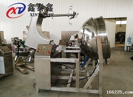 火锅底料炒锅的整体结构主要由全不锈钢机架、低消耗燃烧系统、自动搅拌炒制系统、电动倾倒系统、加厚球墨合金铸铁模铸成型锅体 以及耐热保温系统装置等组成